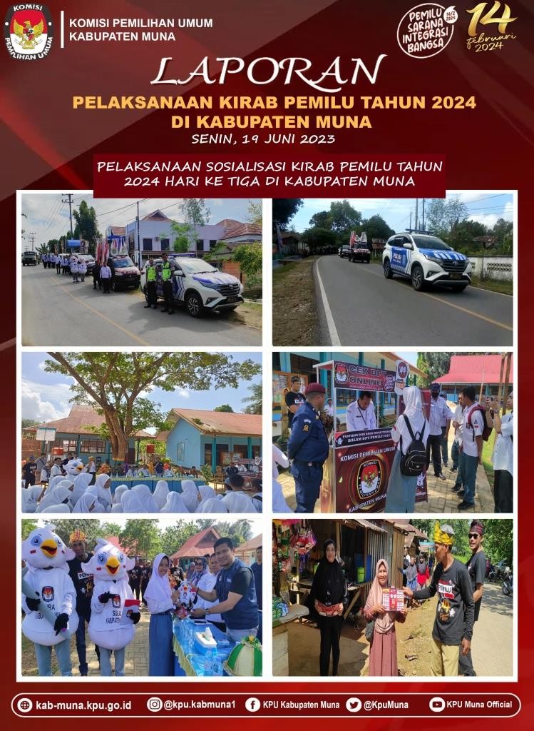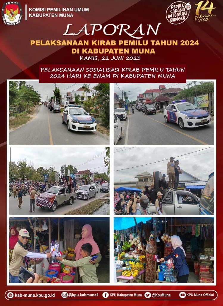 #TemanPemilih. Kegiatan sosialisai Kirab Pemilu Tahun 2024 pada hari ke-6 merupakan giat sosialisasi Road Show (Keliling) dengan nama “PAWAI Pemilu” (Perkenalkan Warga Ikut Pemilu). Giat Pawai Pemilu dimulai dari titik awal di Kantor KPU Kabupaten Muna pada Pukul 09.00 Wita, dimana tim sosialisasi kirab terdiri dari anggota KPU Prov. Sulawesi Tenggara ketua Divisi Parmas, Sosdikin dan SDM, Amirudin, S.Pt, Anggota KPU Kab. Muna Koordinator Divisi Perencanaan, Data dan Informasi, Yuliana Rita, Sekretaris KPU Kabupaten Muna Halisi serta Jajaran Sekretariat KPU Kabupaten Muna yang terdiri dari Kasubag, Staf dan Jagat Saksana KPU Kabupaten Muna Serta Siswa-Siswa SMK yang melaksanakan Praktek Kerja Industri (Prakerin) di Kantor KPU Kabupaten Muna serta PPK dan PPS se-Kec. Katobu, PPK dan PPS se-Kec. Batalaiwaru, PPK dan PPS se-Kec. Watopute, PPK dan PPS se-Kec. Duruka, PPK dan PPS se-Kec. Lasalepa, PPK dan PPS se-Kec. Napabalano, PPK dan PPS se-Kec. Watopute, PPK dan PPS se-Kec. Lohia, PPK dan PPS se-Kec. Kontunaga, PPK dan PPS se-Kec. Pasikolaga, PPK dan PPS se-Kec. Pasir Putih, PPK dan PPS se-Kec. Wakorumba Selatan, PPK dan PPS se-Kec. Batuka serta PPK dan PPS se-Kec. Maligano. Kegiatan Sosialisasi Kirab Pemilu Tahun 2024 hari ke-6 dilakukan dengan iring-iringan PAWAI Pemilu dengan Rute dimulai dari kantor KPU Kabupaten Muna menuju Kecamatan Katobu melalui Jl. Basuki Rahmat terus ke jl. Dr. Sutomo Lanjut ke Jl. Jend. Ahmad Yani Menuju Jl. M.H Tamrin Lanjut ke Jl. Gatot Subroto Menuju ke Kec. Batalaiwaru melalui Jl. Tengiri Lanjut ke Jl. Merdeka (BYPass Laino) Menuju Jl. Gatot Subroto Lanjut Ke jl. Made Sabar dan kembali lagi menuju Kantor KPU Kabupaten Muna. Pada airing-iringan Pawai pemilu disemarakan dengan Orasi Pemilu dan Lagu Jingle Pemilu. Orasi Pemilu dibawakan Oleh Kasubag teknis Penyelenggaraan Pemilu, Partisipasi dan Hubungan Masyrakat, Sarus, SP, Ketua PPS Raha 1 Kec. Katobu, Nurida, Anggota PPK Kec. Watopute, Ruslan dan Anggota PPK kec. Duruka, Sarifudin. Tim sosialisasi kirab berhenti di dua titik yaitu Seputaran Tugu Pahlawan Kec. Katobu dan Pasar Laino Kec. Batalaiwaru. Sosialisasi di seputaran Tugu Pahlawan dimulai pada pukul 09.30 Wita s.d 10.00 Wita dengan sasaran kegiatan adalah masyarakat. Kegiatan ini di isi dengan Orasi Pemilu yang dibawakan oleh Ketua PPS Kel. Raha 1 Kec. Katobu Nurida. Sosialisasi melalui Orasi Pemilu ini bertujuan untuk memberikan Informasi kepada masyarakat sebagai Pemilih terkait tanggal Pemilu pada 14 Februari 2024, Daerah Pemilihan di Kabupaten Muna, cara cek DPT secara online, dan Partai Politik peserta Pemilu tahun 2024 serta Mengingatkan kepada Masyarakat agar dapat menggunakan hak pilihnya pada tanggal 14 Februari 2024. Acara ini juga di isi pembagian flayer dan stiker kepada masyarakat yang melintas diseputaran tugu pahlawan. Kegiatan sosialiasi Kirab dengan iring-iringan PAWAI Pemilu dilanjutkan ke Kec. Batalaiwaru dengan titik singgah di Pasar Laino Kec. Batalaiwaru. Sosialisasi dipasar Laino Kec. Batalaiwaru dimulai pada pukul 10.30 Wita s.d 11.15 Wita dengan sasaran kegiatan Masayarakat dan Pedagang. Kegiatan ini di isi dengan Orasi Pemilu yang dibawakan oleh Anggota KPU Prov. Sulawesi Tenggara Ketua Koordinator Divisi Parmas, Sosdikin dan SDM, Amirudin, S.Pt. Sosialisasi melalui Orasi Pemilu ini bertujuan untuk memberikan Informasi kepada masyarakat sebagai Pemilih terkait tanggal Pemilu pada 14 Februari 2024, Daerah Pemilihan di Kabupaten Muna, cara cek DPT secara online, dan Partai Politik peserta Pemilu tahun 2024 serta Mengingatkan kepada Masyarakat agar dapat menggunakan hak pilihnya pada tanggal 14 Februari 2024. Sosialisasi dipasar Laino Kec. Batalaiworu juga di isi dengan sesi kuis dimana para Peserta Sosialisasi yang menjawab pertanyaan dengan benar mendapatkan hadiah berupa boneka Maskot Pemilu Sura dan Sulu. Tim Sosialisasi Kirab juga melakukan Pembagian Flayer dan Stiker Kepada Masyarakat dan Pedagang. #KPUMelayani #PemiluSerentak2024