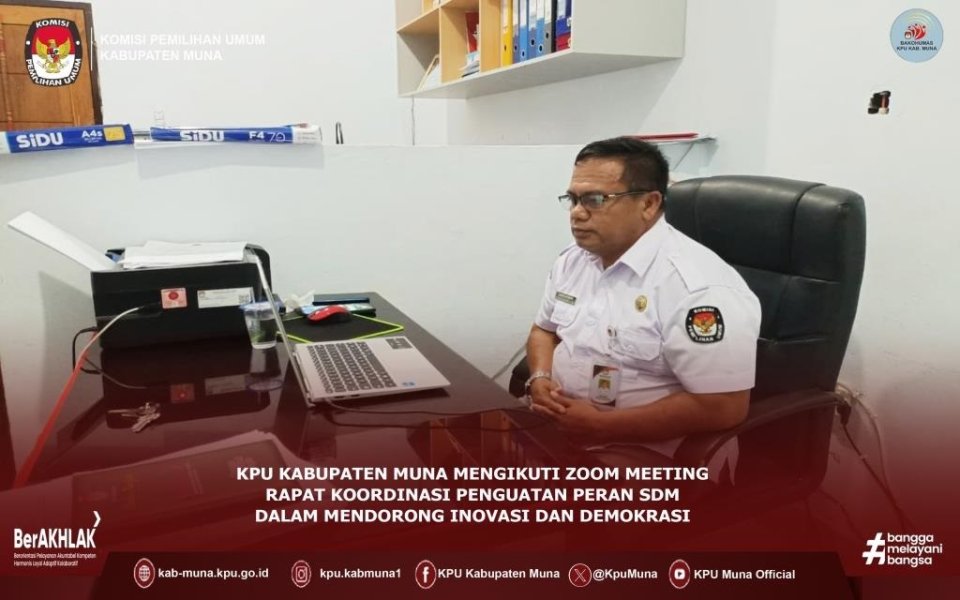 Komisi Pemilihan Umum Kabupaten Muna hadir mengikuti Zoom Meeting dengan tema "Rapat Koordinasi Penguatan Peran SDM Dalam Mendorong Inovasi dan Demokrasi" yang diselenggarakan oleh KPU Republik Indonesia. Senin (13/10/2025)