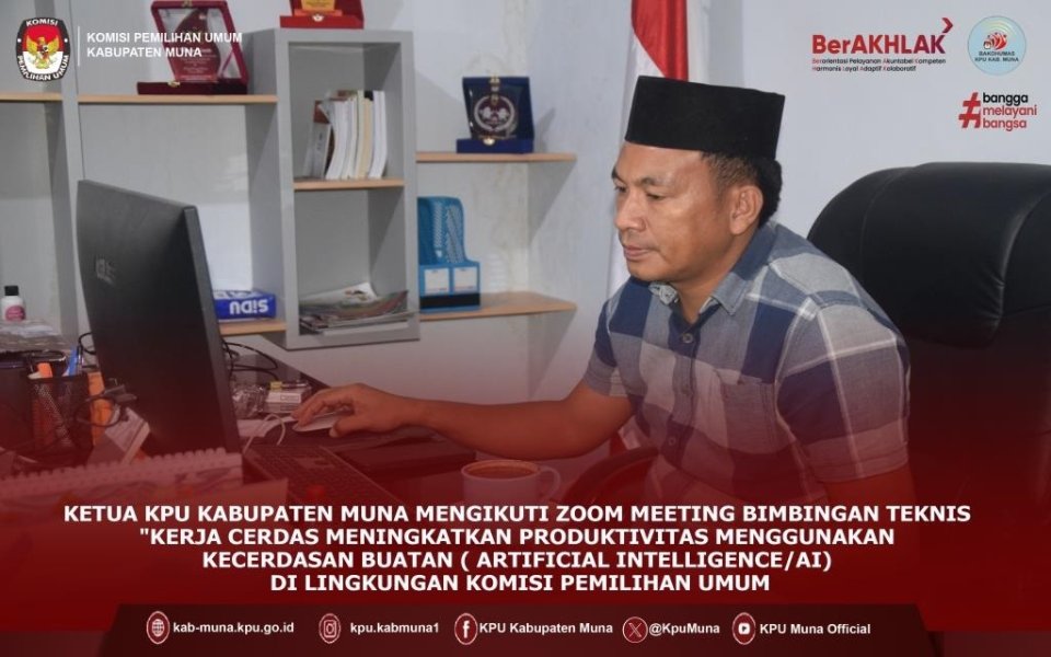 kab-muna.kpu.go.id - Ketua Komisi Pemilihan Umum Kabupaten Muna "La Ode Muhamad Askar Adi Jaya" hadir mengikuti Zoom Meeting Bimbingan Teknis "Kerja Cerdas Meningkatkan Produktivitas Menggunakan Kecerdasan Buatan ( Artificial Intelligence/Ai) Di Lingkungan Komisi Pemilihan Umum", kegiatan ini diselenggarakan oleh KPU Republik Indonesia. Jum'at (17/10/2025)