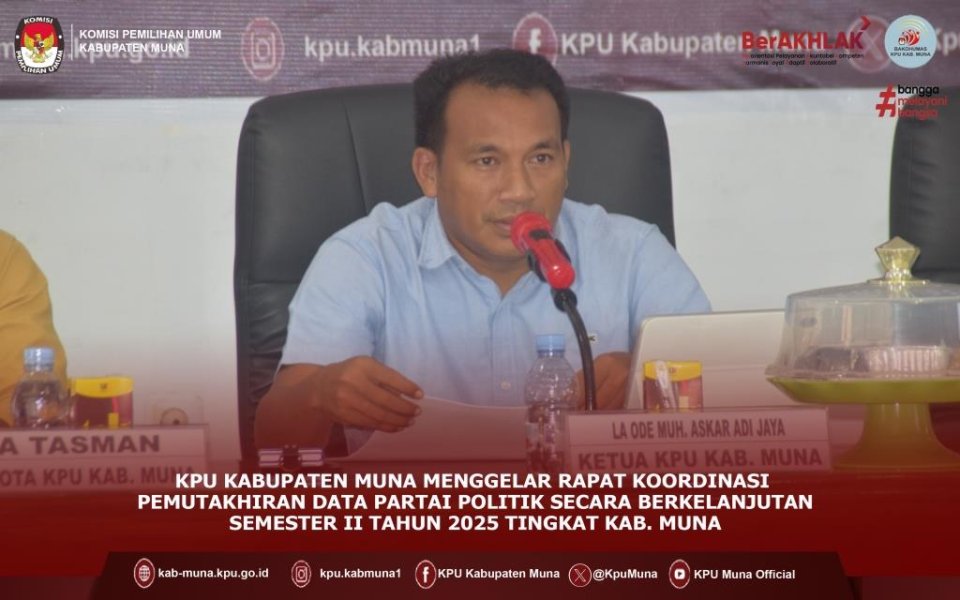 Dalam sambuatanya La Ode Muhamad Askar Adi Jaya menyampaikan bahwa pemutakhiran data partai politik merupakan bagian penting dari upaya KPU dalam menjaga kualitas data keparataian baik untuk kepentingan administrasi kelembagaan maupun sebagai dasar dalam menyelenggarakan tahapan pemilu, karena data yang valid, mutakhir dan terverifykasi menjadi kunci agar proses demokrasi berjalan dengan prinsip akurat, terbuka dan dapat dipertanggungjawabkan.