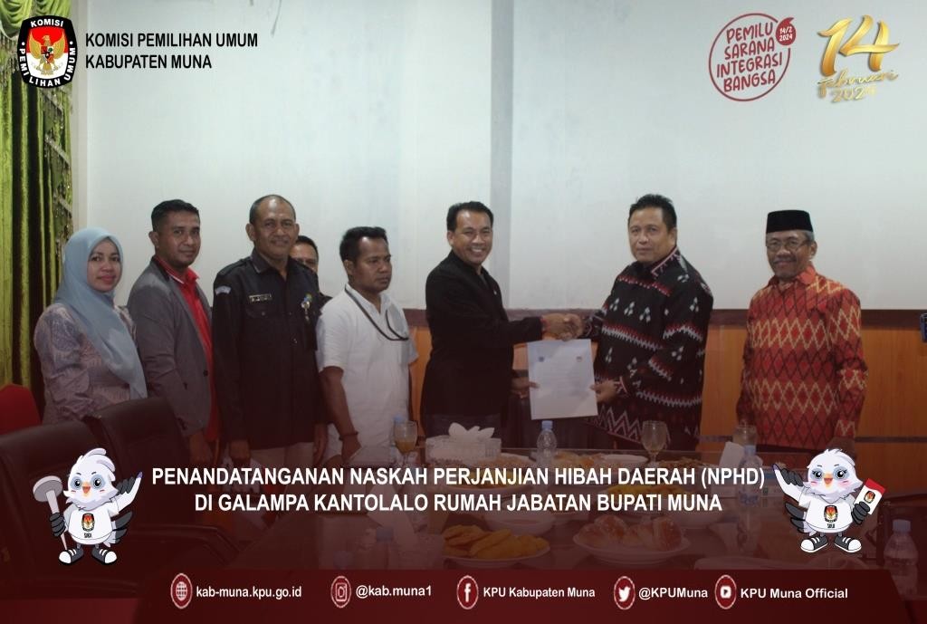 #TemanPemilih. Ketua KPU Kabupaten Muna, Laode Muhamad Askar Adi Jaya dan Bupati Muna, Rusman Emba menandatangani Naskah Perjanjian Hibah Daerah (NPHD) bertempat di Galampa Kantolalo rumah Jabatan Bupati Muna. Pada kegiatan penandatanganan NPHD antara Ketua KPU Muna dan Bupati Muna juga dihadiri oleh Anggota KPU Kab. Muna, Sekretaris dan Jajaran Kasubag KPU Kabupaten Muna, Wakil Bupati Muna dan Sekretaris Daerah Kabupaten Muna, Kepala Kesbangpol dan Kepala BKAD. Pada kesempatan tersebut, Bupati Muna Menyampaikan bahwa dana hibah yang diberikan itu untuk membiayai seluruh kebutuhan Pilkada 2024 mendatang dan Besaran dana itu ditetapkan berdasarkan hasil reviu dari Inspektorat. Dimana, dari usulan awal KPU sebesar Rp 53 miliar, yang tersisa tinggal Rp 42,1 miliar. Sementara itu, Sekretaris KPU Muna, Halisi menerangkan bahwa anggaran Rp 42,1miliar tersebut bisa mencukupi untuk membiayai pilkada Tahun 2024, Rabu Malam (25/10/2023). #KPUMelayani #PemiluSerentak2024