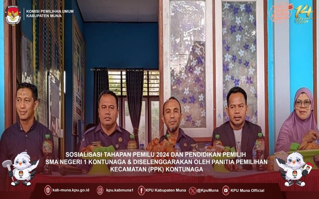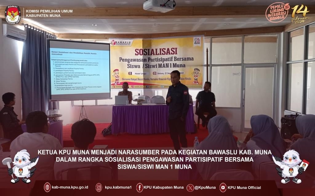 Kegiatan tersebut dihadiri oleh oleh Anggota KPU Muna Kordiv. Sosialisasi, Pendidikan Pemilih, Parmas dan SDM, La Tasman, Kordiv. Teknis Penyelenggaraan, La Ode Ngkumabusi dan Kordiv Hukum dan Pengawasan, Wa Ode Lilis Widya Ningsih. Sosialisasi itu juga dihadiri oleh Kasubag Hukum dan SDM, Kasubag Teknis Penyelenggaraan Pemilu, Partisipasi dan Hubungan Masyarakat dan Kasubag Perencanaan, Data dan Informasi Serta Staf Sekretariat KPU Kabupaten Muna.