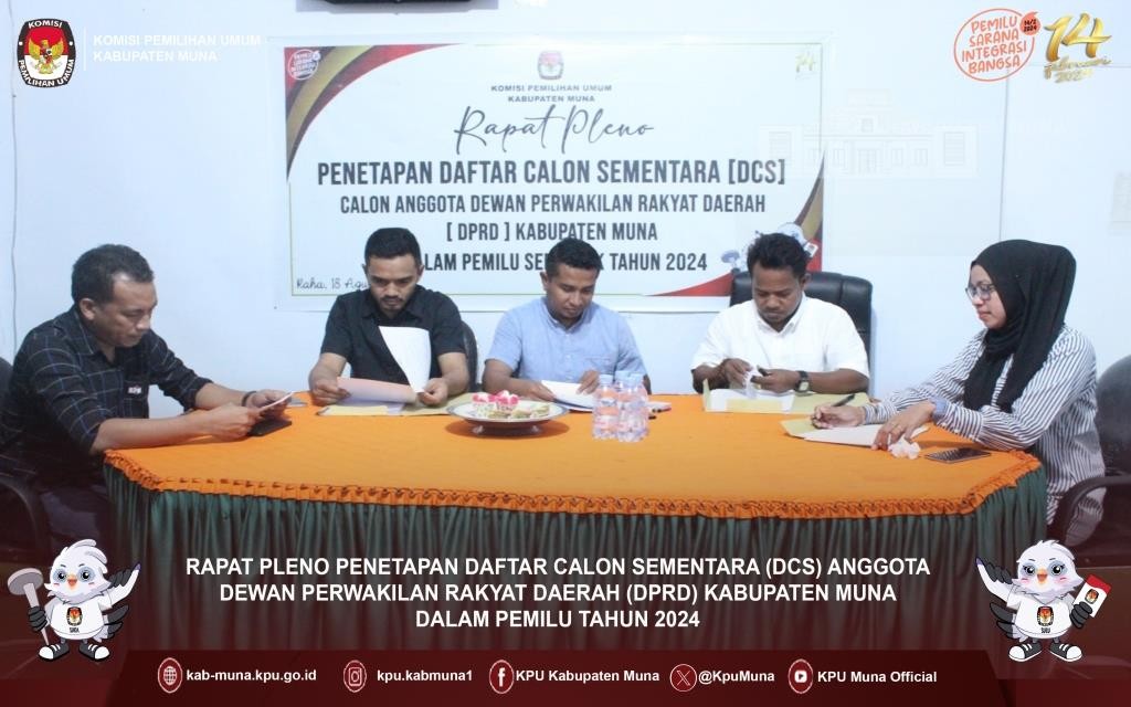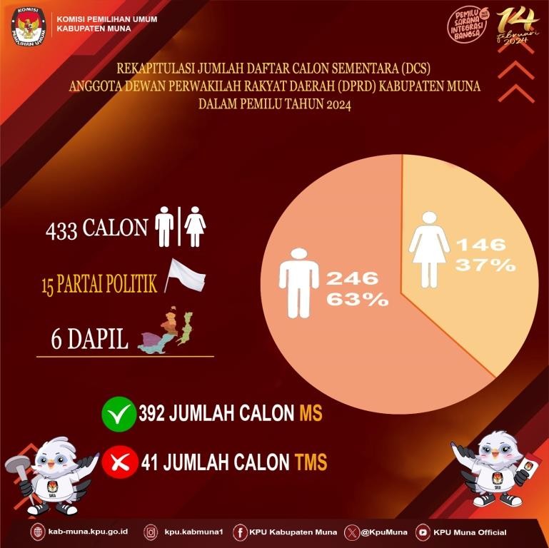 KPU Kabupaten Muna mengumumkan Daftar Calon Sementara (DCS) Anggota DPRD Kabupaten Muna dan persentase keterwakilan perempuan dalam Daftar Calon Sementara (DCS) sebagaimana terlampir.