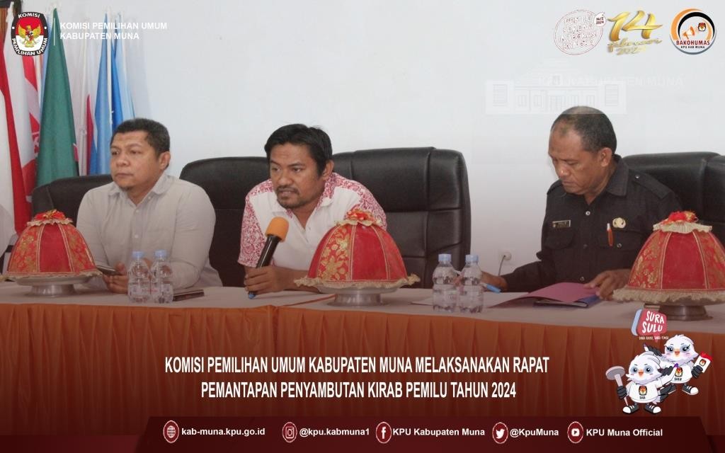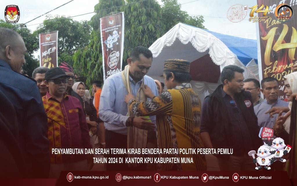 #TemanPemilih. Komisi Pemilihan Umum Kabupaten Muna Melaksanakan Penyambutan dan Serah Terima Kirab Bendera Partai Politik Peserta Pemilu Tahun 2024, Sabtu (17/06/2023). Kirab Pemilu Tahun 2024 diluncurkan secara serentak pada tanggal 14 Februari 2023 pada 7 Titik seluruh Indonesia dan KPU Kabupaten Muna merupakan Rute Jalur VII yang diawali dari Provinsi Papua, kemudian Estafet ke Provinsi Papua Barat, Kemudian lanjut ke Maluku dan Akhirnya tiba di Provinsi Sulawesi Tenggara pada tanggal 11 Juni 2023 dengan titik awal di Kota Bau-Bau. Selanjutnya melalui Jalur Penyebrangan Bau-Bau – Wamengkoli menuju Kabupaten Muna dan pada tanggal 17 Juni 2023 KPU Kabupaten Muna Menerima Estafet Kirab Pemilu Tahun 2024 dari KPU Kabupaten Bau-Bau di Kantor KPU Kabupaten Muna. Kirab Pemilu di Kabupaten Muna akan berlangsung selama 7 Hari hingga tanggal 23 Juni 2023 dan pada Tanggal 23 Juni 2023 KPU Kabupaten Muna akan melanjutkan Estafet Kirab Pemilu kepada KPU Kota Kendari di Kendari. Pada kegiatan penyambutan dan serah terima kirab tersebut KPU Kabupaten Muna beserta jajarannya dan seluruh Badan Ad Hoc KPU Kaupaten Muna menyatakan siap mensukseskan Pelaksanaan Kirab Pemilu Tahun 2024. #KPUMelayani #PemiluSerentak2024