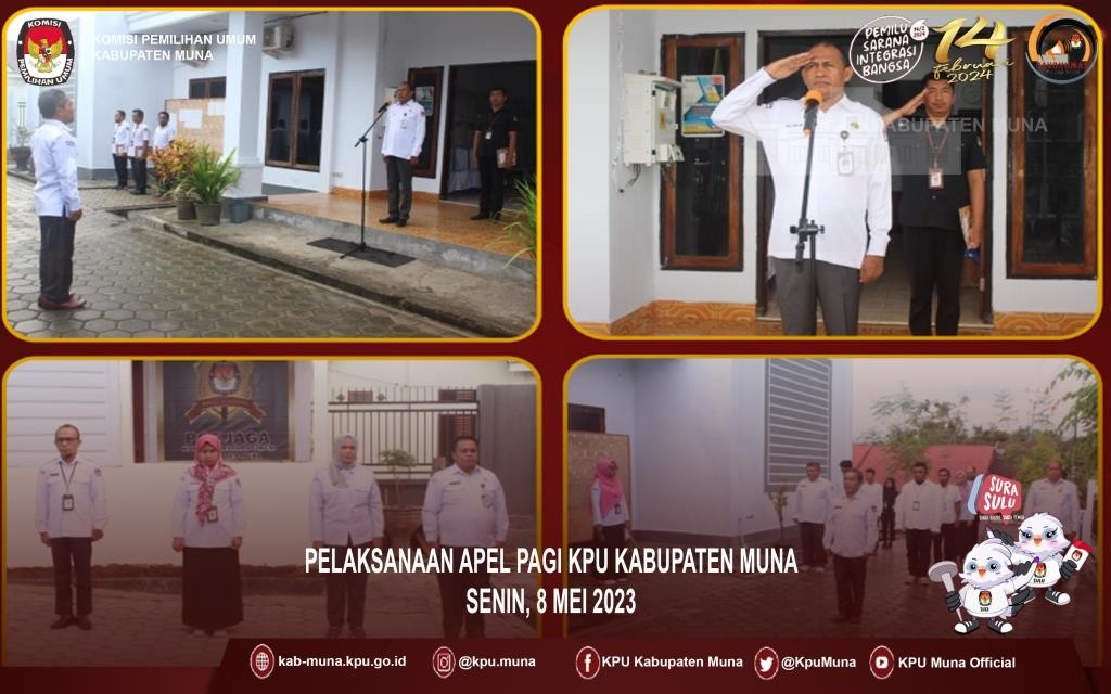 Pada Apel Pagi tersebut, Sekretaris KPU Kabupaten Muna, Halisi Menjadi Pembina Apel. Sebagai pembina Apel, Halisi menyampaikan untuk tetap menjaga kedisiplinan, kekompakan dan solidaritas dalam Bekerja apalagi dalam amasa tahapan Pemilu Seperti Sekrang ini.