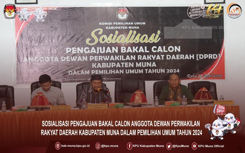 #TemanPemilih. Komisi Pemilihan Umum (KPU) Kabupaten Munatelah membuka secara resmi pendaftaran bakal calon (Balon) Angoota Dewan Perwkilan Rakyat Daerah (DPRD) Muna pada Senin 1 Mei 2023. Berdasarkan jadwal Tahapan, Pendaftaran bakal calon legislative (bacaleg) ini alan dibuka hingga 14 mei mendatang.