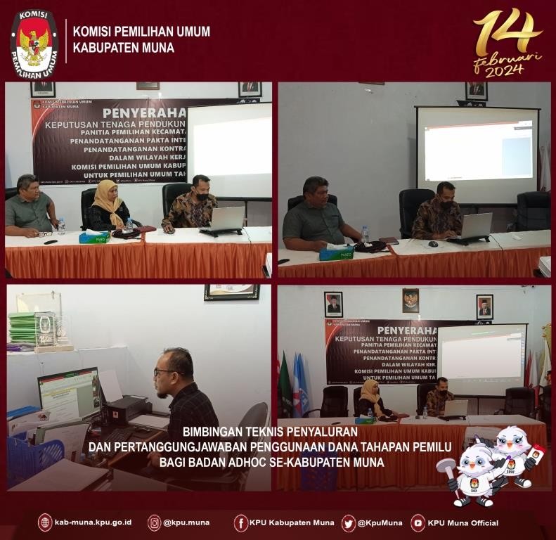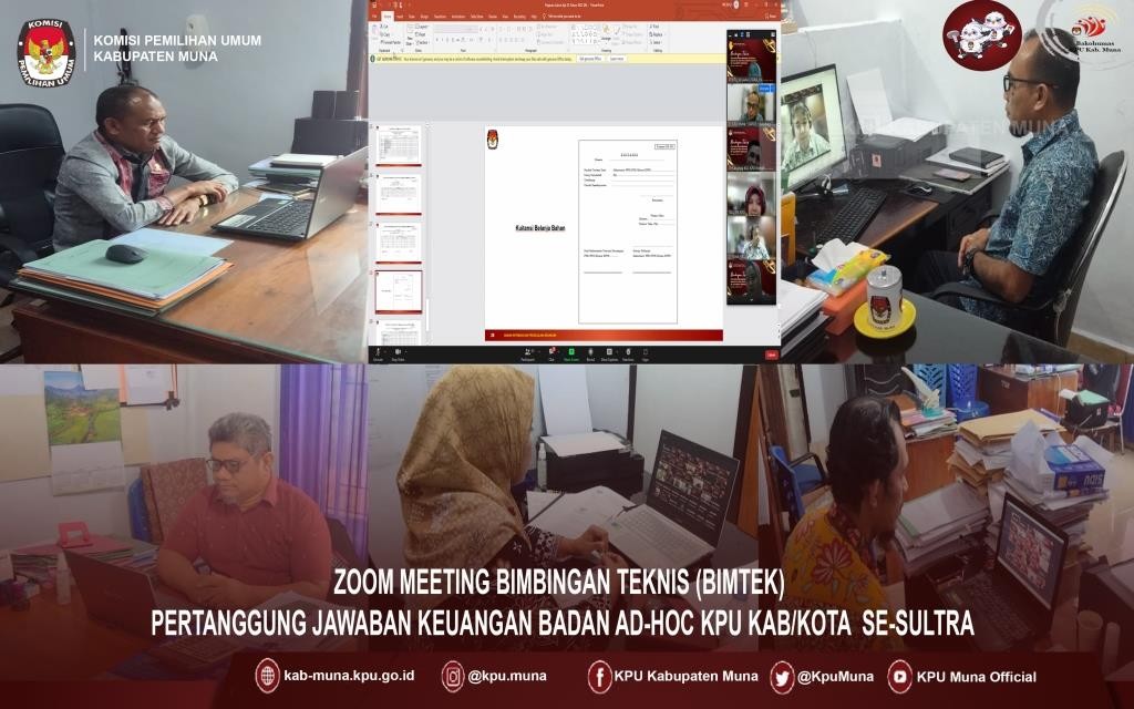#TemanPemilih. Jum’at (10/03/2023), Sekretaris KPU Kab. Muna, Halisi selaku Kuasa Pengguna Anggaran (KPA), Kasubag Keuangan, Umum dan Logistik, Wa Ode Muliati Hariki, Kasubag Teksnis Penyelenggara Pemilu, Partisipasi dan Hubungan Masyarakat, Sarus selaku Pejabat Pembuat Komitmen (PPK) dan Bendahara KPU Kab. Muna Era Rachman serta Operator Keuangan KPU Kab. Muna, Sawaludin mengikuti Bimbingan Teknis PertanggungJawaban Keuangan Badan Adhoc KPu Kab/Kota Se-Sulawesi Tenggara. Kegiatan tersebut diikuti secara daring melalui via Zoom Meeting.