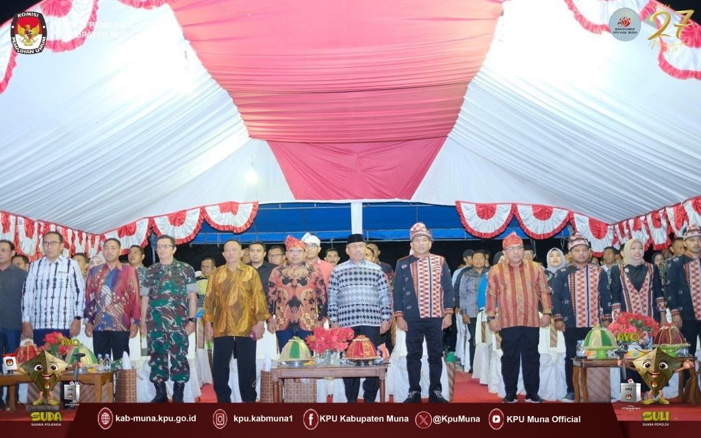 Peluncuran itu ditandai dengan bunyi Peringatan Sirine dan Kembang Api yang sudah didesain oleh Event Organization (EO). Peluncuran Maskot dan Jingle KPU Kab. Muna juga dimeriahkan oleh Penyanyi Ibu Kota, Dina Rubby.