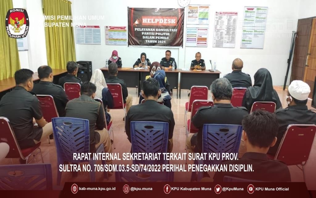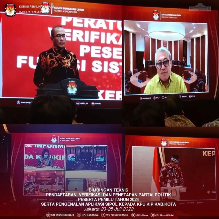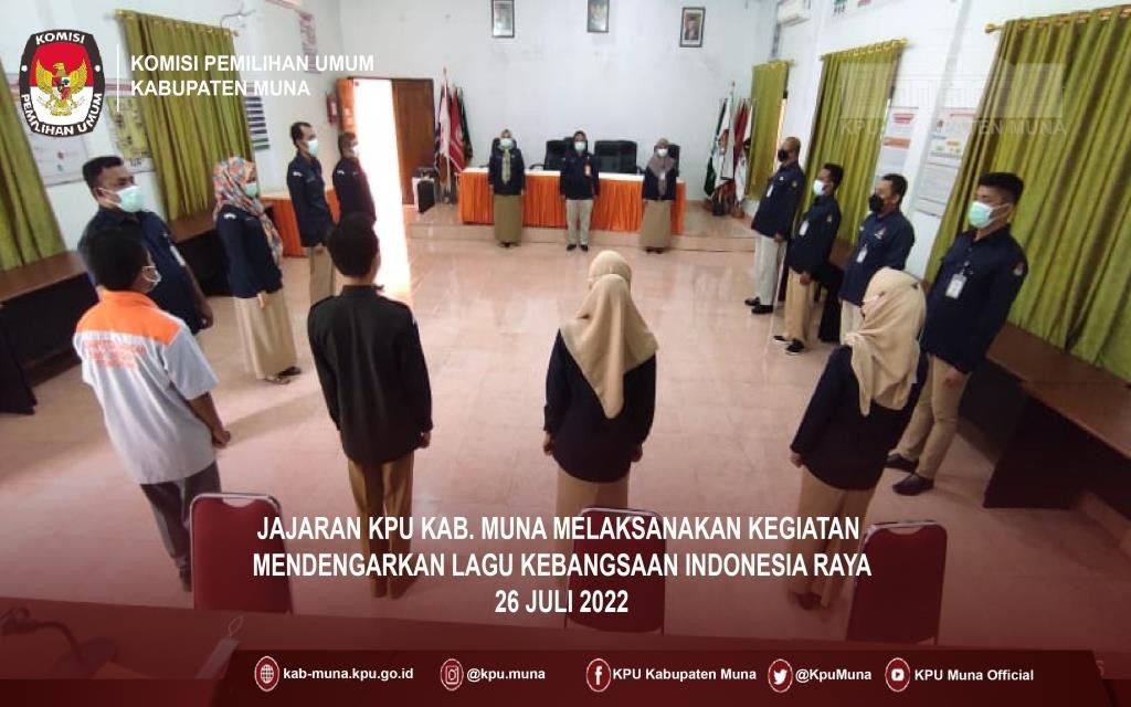 #TemanPemilih. Rabu (27/07/2022), KPU Kabupaten Muna melaksanakan kegiatan pembacaan naskah teks pancasila bertempat di Aula Kantor KPU Kab. Muna. Kegiatan tersebut dimulai pada pukul 10.00 Wita yang diikuti oleh Anggota KPU Muna Divisi Sosialisasi, Pendidikan Pemilih, Partisipasi Masyarakat dan SDM Nggasri Faeda, Pelaksana Harian Sekretaris KPU Kab. Muna Andi Arwin, dan jajaran Kasubag serta staf sekretariat KPU Kabupaten Muna. naskah teks Pancasila dibacakan oleh Ketua KPu Kab. Muna Kubais.